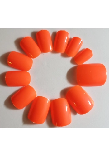 JR Adult Glossy Gel Finish Bright Orange Color Short Round Press On/Glue On Nails (24 Count) DIY
