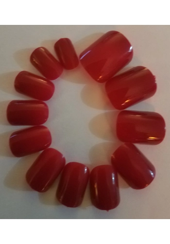 JR Adult Glossy Gel Finish Deep Red Color Short Round Press On/Glue On Nails (24 Count) DIY Mani