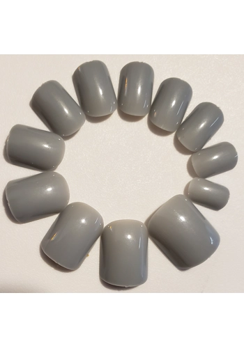 JR Adult Glossy Gel Finish Grey Color Short Round Press On/Glue On Nails (24 Count) DIY Mani