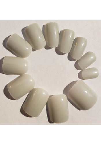 JR Adult Glossy Gel Finish Light Grey Color Short Round Press On/Glue On Nails (24 Count) DIY Mani