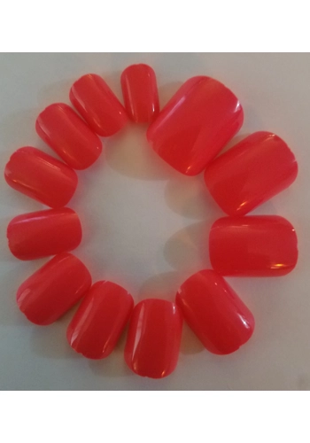 JR Adult Glossy Gel Finish Red Orange Color Short Round Press On/Glue On Nails (24 Count) DIY