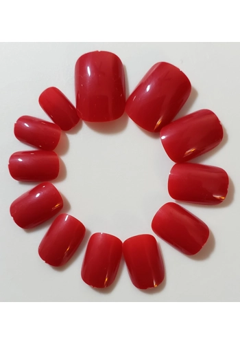 JR Adult Glossy Gel Finish Rich Red Color Short Round Press On/Glue On Nails (24 Count) DIY